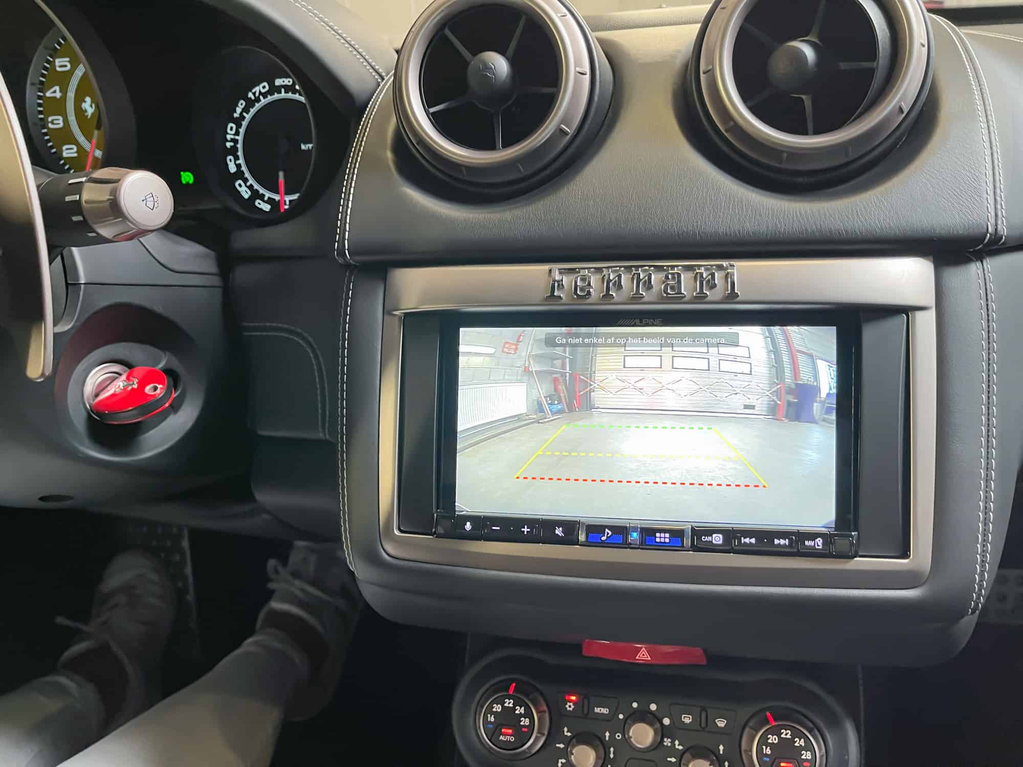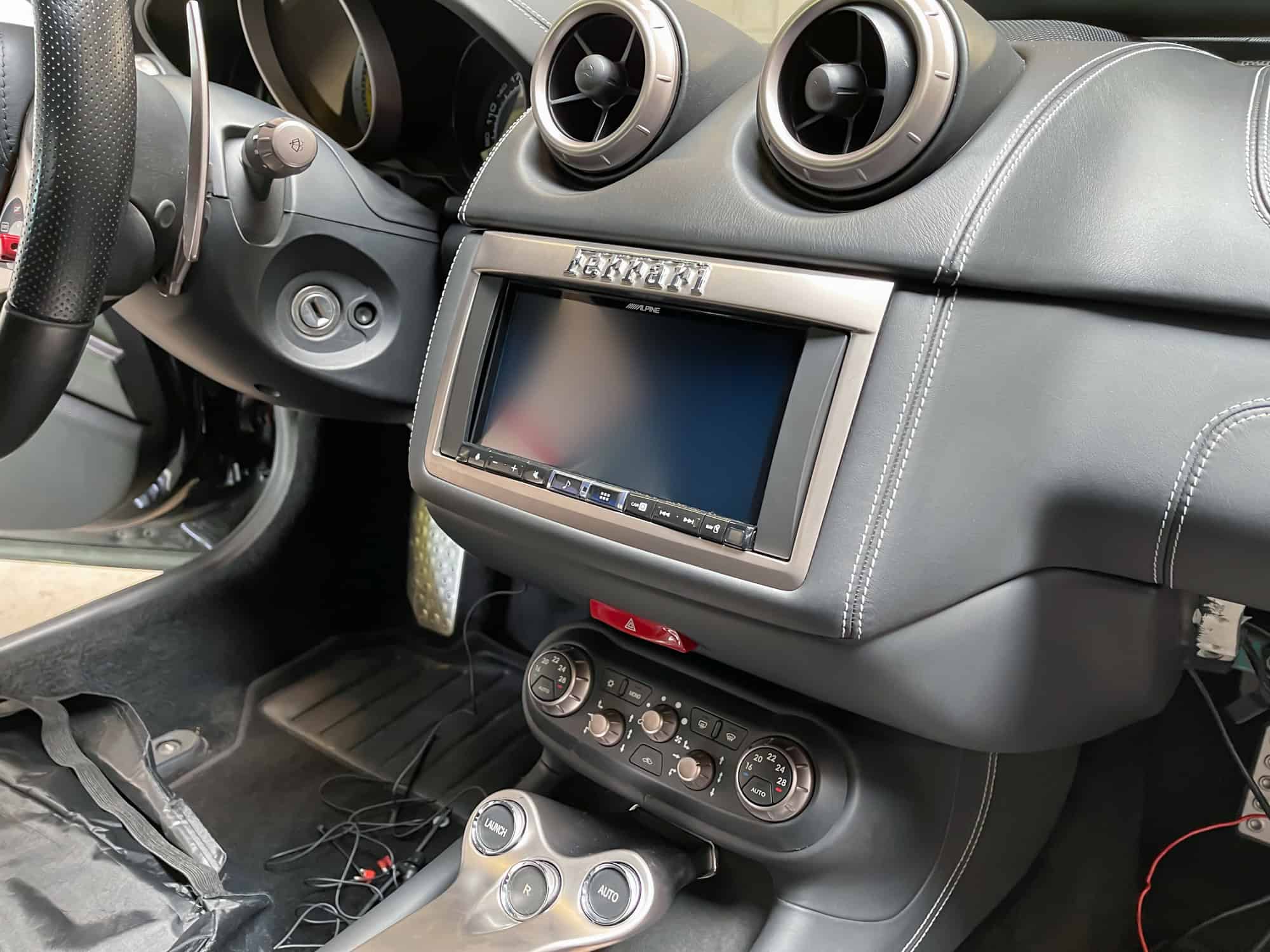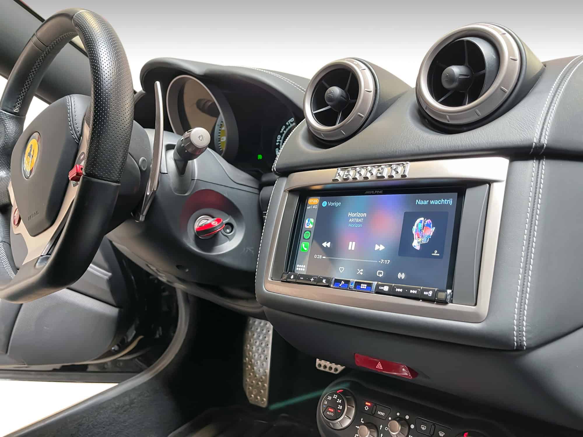 Voor deze schitterende Ferrari California realiseerde Car Audio Limburg een high-end multimedia-upgrade met een nieuw Alpine multimediascherm en achteruitrijcamera.