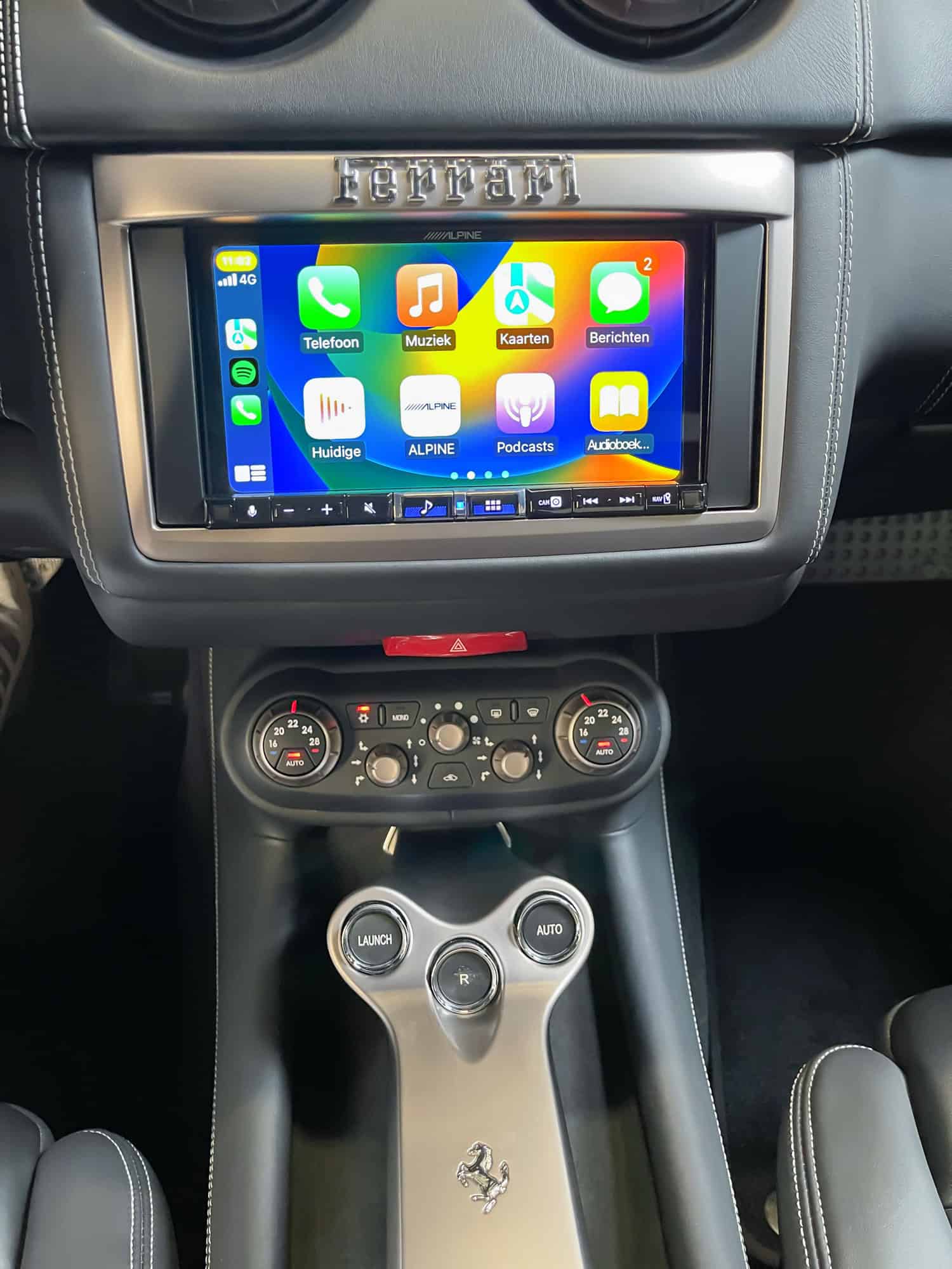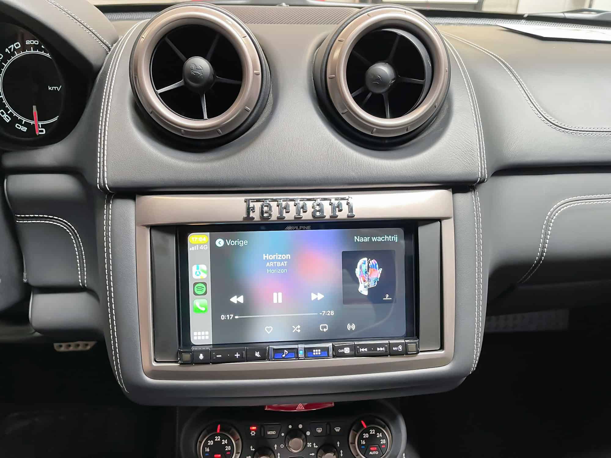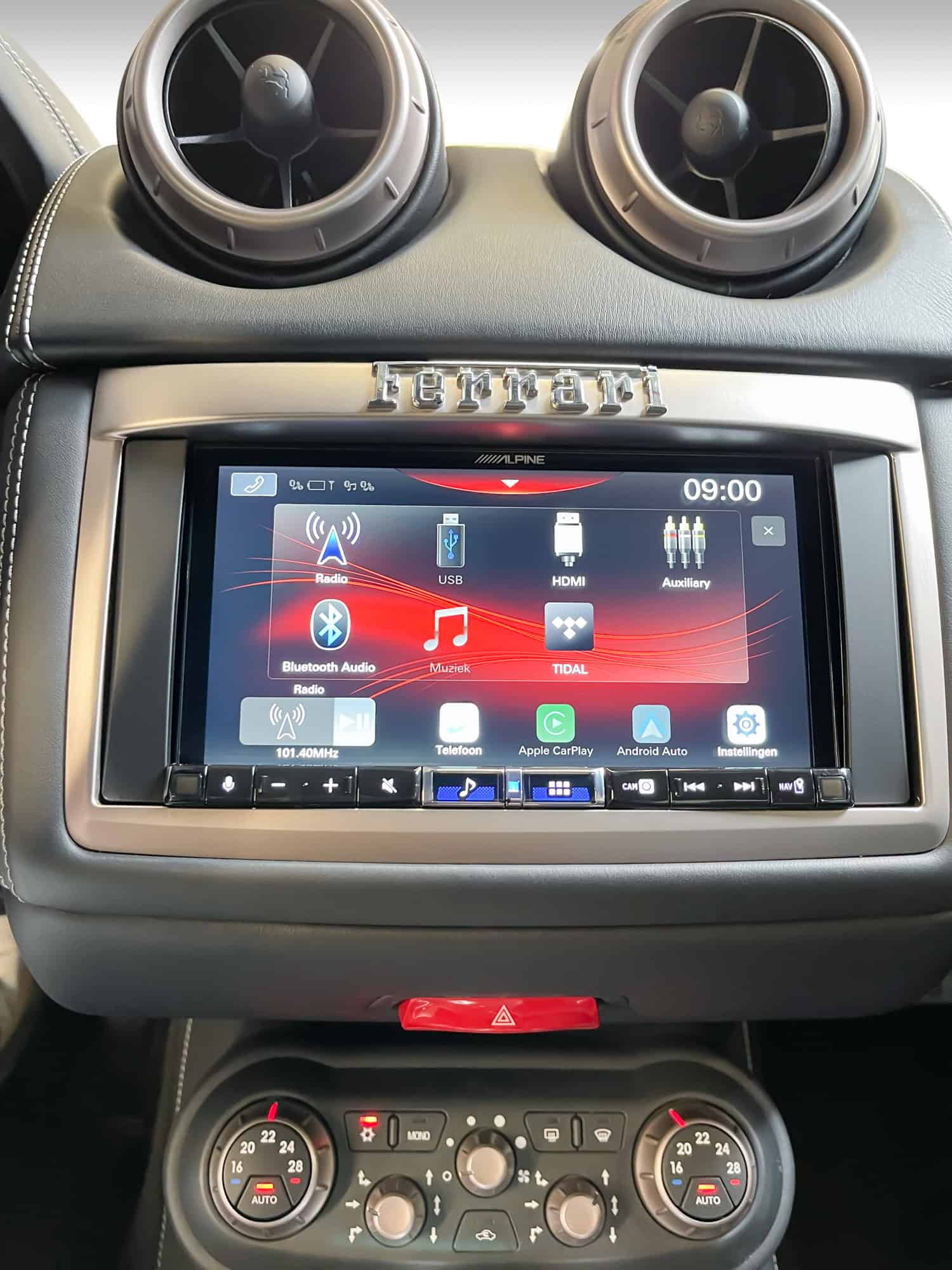Voor deze schitterende Ferrari California realiseerde Car Audio Limburg een high-end multimedia-upgrade met een nieuw Alpine multimediascherm en achteruitrijcamera.