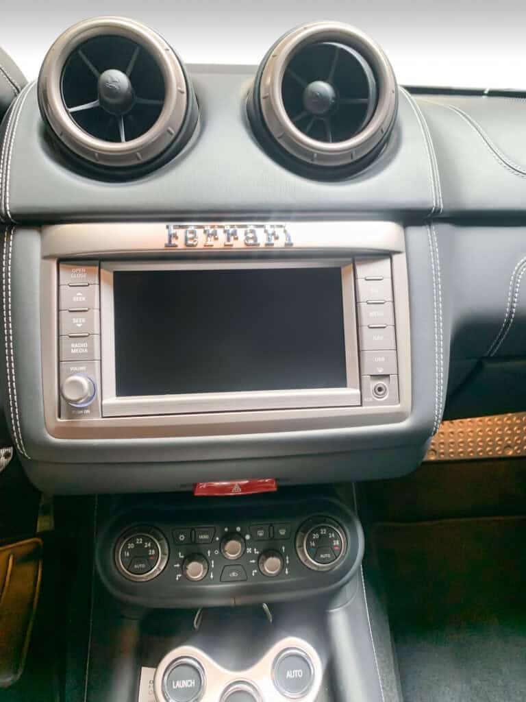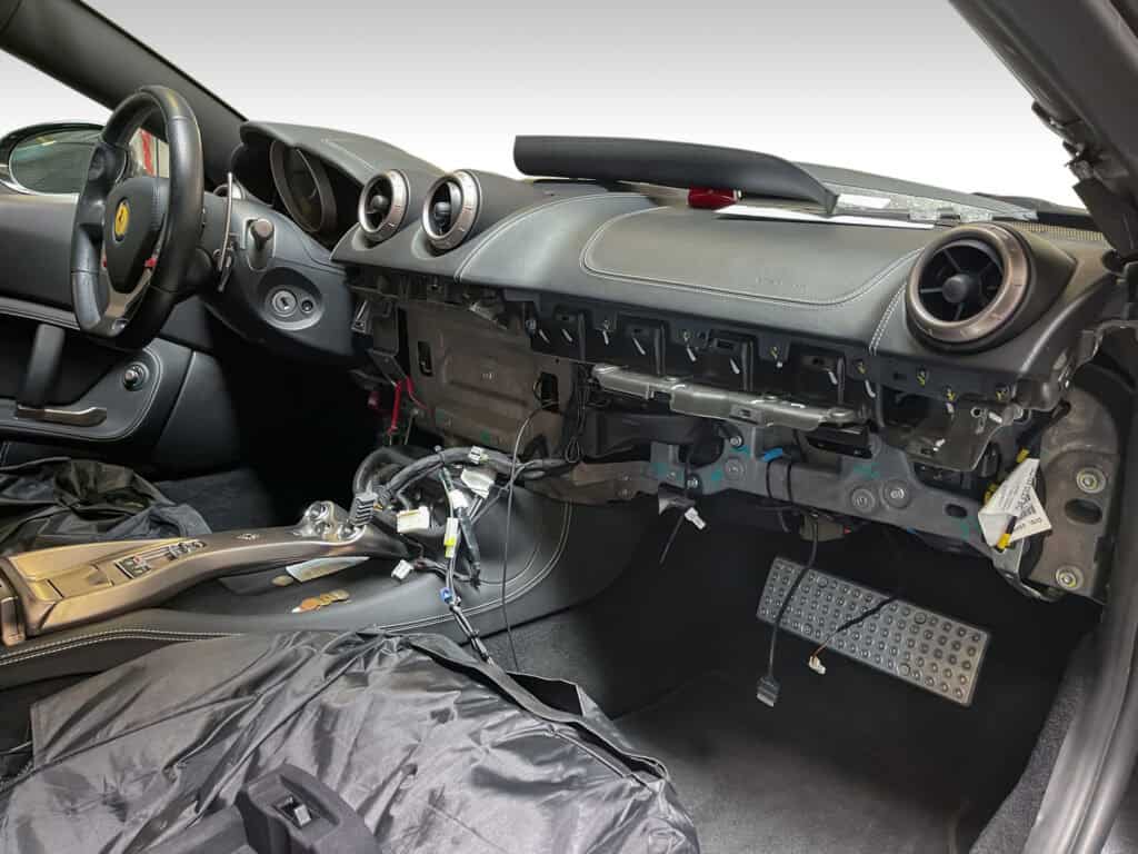 De installatie werd volledig geïntegreerd in het dashboard, afgestemd op de lijnen en materialen van de Ferrari, zodat het geheel OEM en harmonieus oogt.